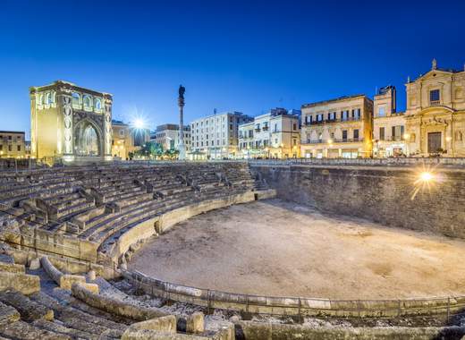 Durante nuestro recorrido, apreciaremos las bellas construcciones en estilo “Barroco leccese” y exploraremos los vestigios de la época romana que perduran en la ciudad, así como los imponentes edificios como la Catedral, la Basílica de Santa Croce, el anfiteatro, el Teatro Romano y el Castillo de Carlos V, entre otros. Traslado al hotel. (Cena opción categoría comidas).