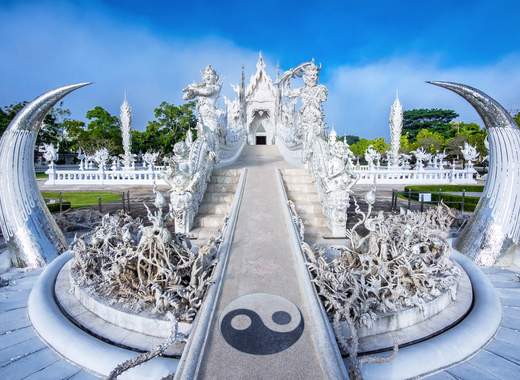 Después de un desayuno que despierta el alma, inicia tu viaje saliendo del hotel hacia una jornada de descubrimiento artístico y espiritual. La primera parada te lleva al Wat Rong Khun, el icónico “Templo Blanco”, una visión celestial creada por la mente maestra del artista Chalermchai Kositpipat en 1997. Este templo es un lienzo de paz y reflexión, brillando con pureza en cada detalle. La exploración continúa en el Wat Rong Suean Ten, el “Templo Azul”, donde la danza del azul y el amarillo se entrelaza con el blanco sagrado, creando un espectáculo visual que celebra la figura de Buda en su interior. A medida que la mañana avanza, te adentrarás en el místico Triángulo de Oro, donde las aguas del Mekong y el Ruak esculpen fronteras naturales entre Laos, Birmania y Tailandia. Desde la altura, las vistas son un tapiz de historia y naturaleza, un recuerdo imborrable de la confluencia de culturas.